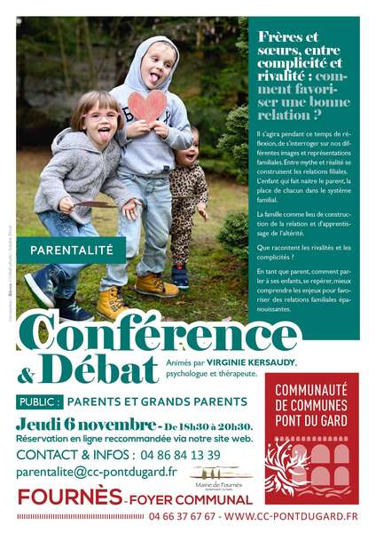 La Communauté de Communes Pont du Gard organise une conférence-débat le jeudi 6 novembre 2025, de 18h30 à 20h30 à la Maison des associations de Remoulins, animée par Virginie Kersaudy, psychologue et thérapeute.
