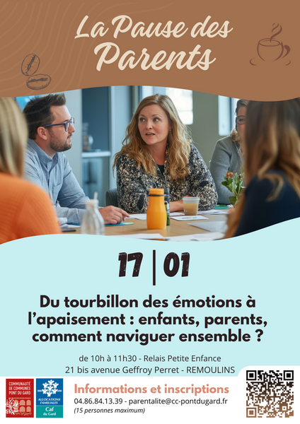 - Inscription obligatoire (dans la limite des places disponibles) au 04 86 84 13 39 ou parentalite@cc-pontdugard.fr