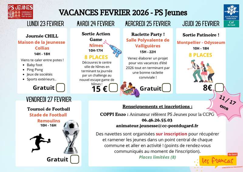 Entre sport, sorties, rires, défis et bons repas, tu ne risques pas de t’ennuyer. Et pas de galère pour le transport : des navettes sont prévues sur inscription pour te récupérer et te ramener dans ta commune.