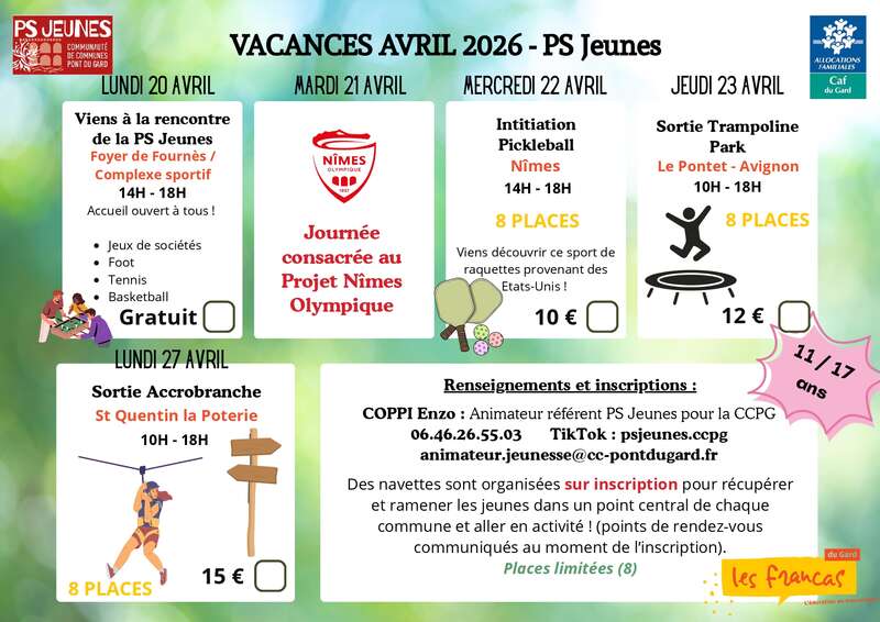 Entre sport, sorties, rires et défis, tu ne risques pas de t’ennuyer. Et pas de galère pour le transport : des navettes sont prévues sur inscription pour te récupérer et te ramener dans ta commune.